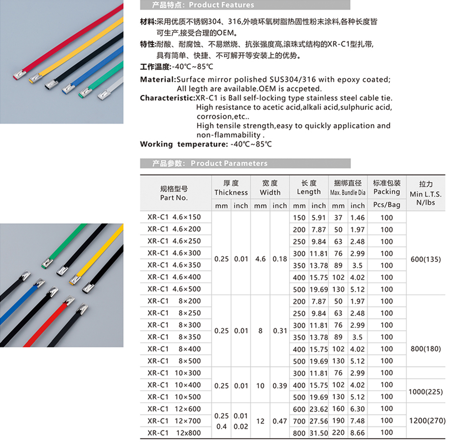 噴塑不銹鋼扎帶-滾珠自鎖式