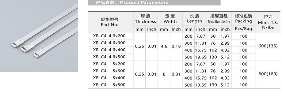 白鋼不銹鋼扎帶-滾珠自鎖式帶腳加強(qiáng)型